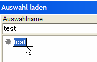Das Umbenennen einer Auswahl ist in den Dialogfenstern Auswahl laden / speichern / löschen möglich. Sie können die Auswahl wie im Windows Explorer üblich umbenennen.