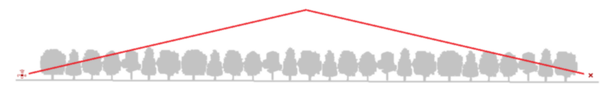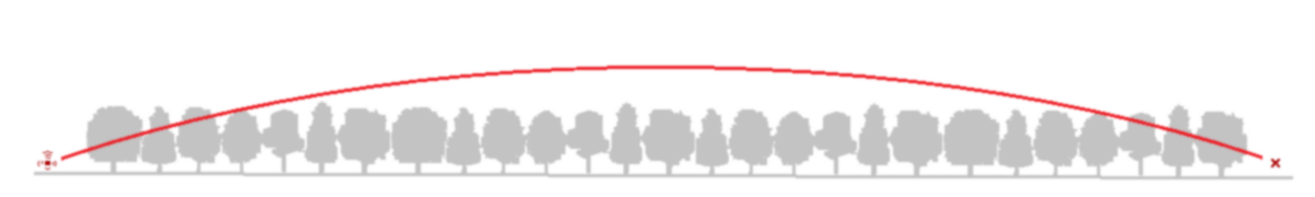 - In this method, the "through-forest-path-length" (length of the portion of the 5km-radius curved path that lies within the forest, excluding the portion above the trees) is used to obtain the total attenuation (see image); note however that the standard limits this length (hard bound at 200m). For details, see [ISO-9613-2].
