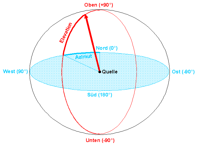 | Abb 1. | Definition von Azimuth und Elevation der Hauptachse einer Punktquelle |