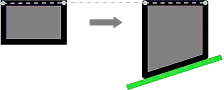 - obere Elementform relativ beibehalten, H neu ≤ H alt: Die Form der Objektoberkante bleibt erhalten (z.B. Höhendifferenzen eines Schrägdaches), das Element wird so an das Terrain angepasst, dass die neuen Höhen H bei allen Punkten des Elementes maximal gleich gross oder kleiner als die ursprünglichen Höhen H sind. Das Element wird dabei so an das Terrain angepasst, dass keine der Elementhöhen H kleiner als 0 wird.