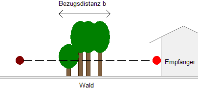 wobei: ΔW ≈ -5dBA pro 100m Wald